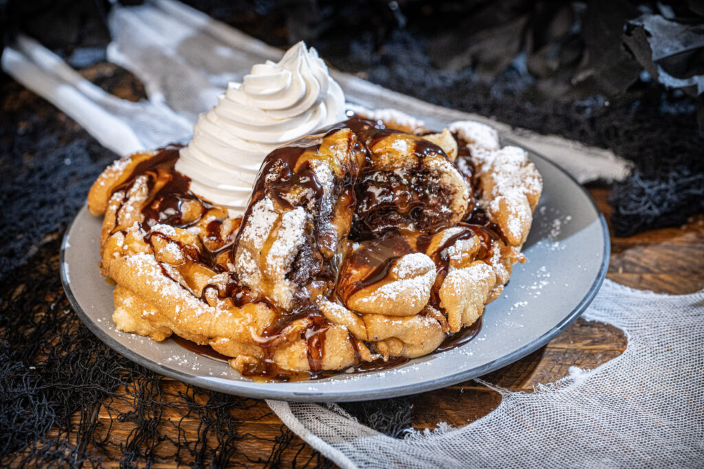 Feast or Fright: This year, Knott’s Scary Farm is taking its culinary creepiness to the next level with a lineup of blacklight-glowing treats and spine-tingling specialties. Don’t miss the “Blood Moon Bat Wings,” an eerie dish as dark as the Green Witch’s heart, or indulge your sweet tooth with the Killer Brownie Funnel Cake, so haunting, it might just demand a soul for proper enjoyment. If you’re looking to level up your experience, treat yourself to the Boo-fet at Mrs. Knott’s Chicken Dinner Restaurant. This nightly buffet, hosted by roaming monsters, includes a souvenir bottle and a photo moment with the ghoulish crew, plus early access to a couple of the newest mazes